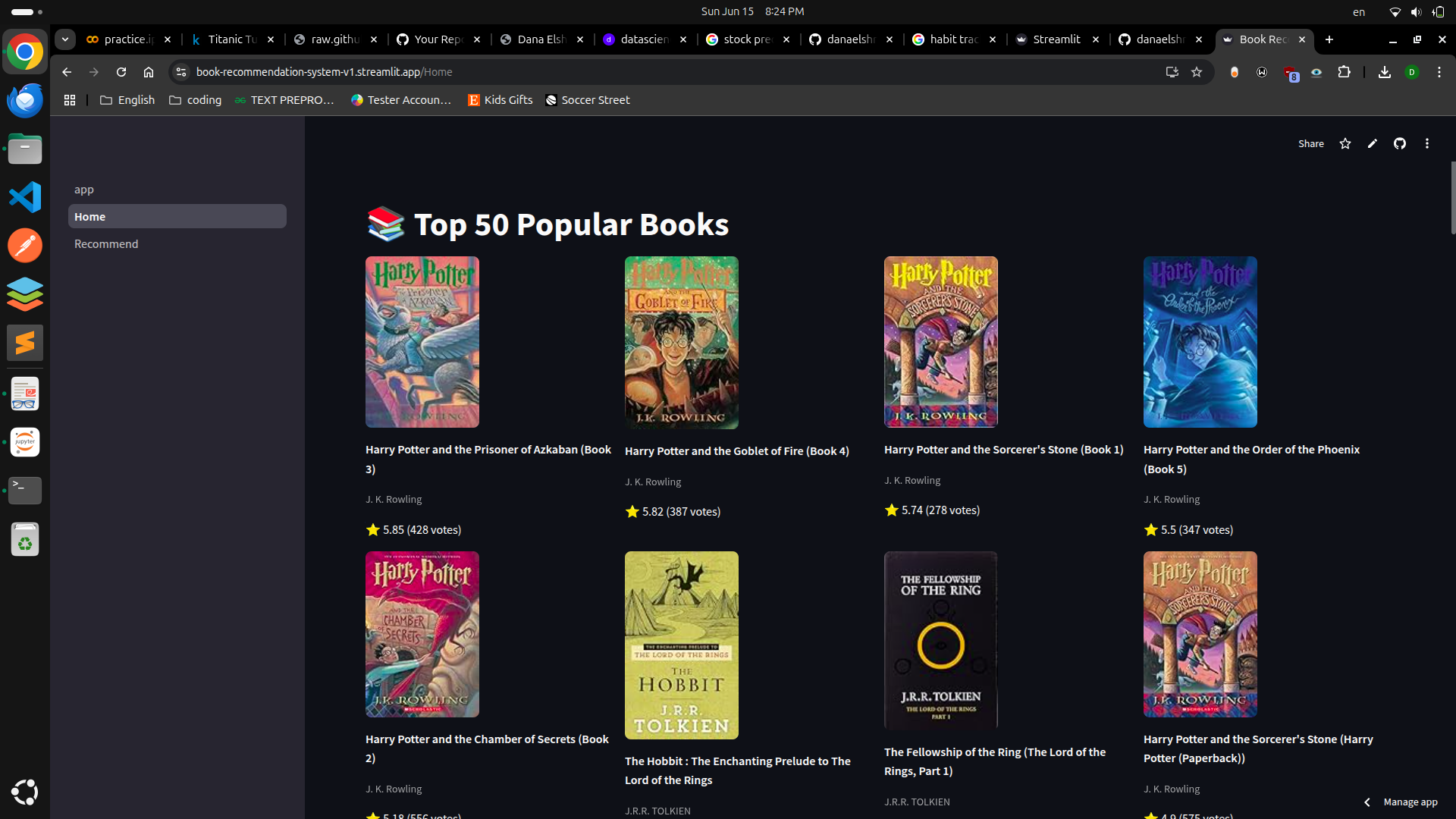 Content-based recommender suggesting similar books using cosine similarity on user-book interaction data.